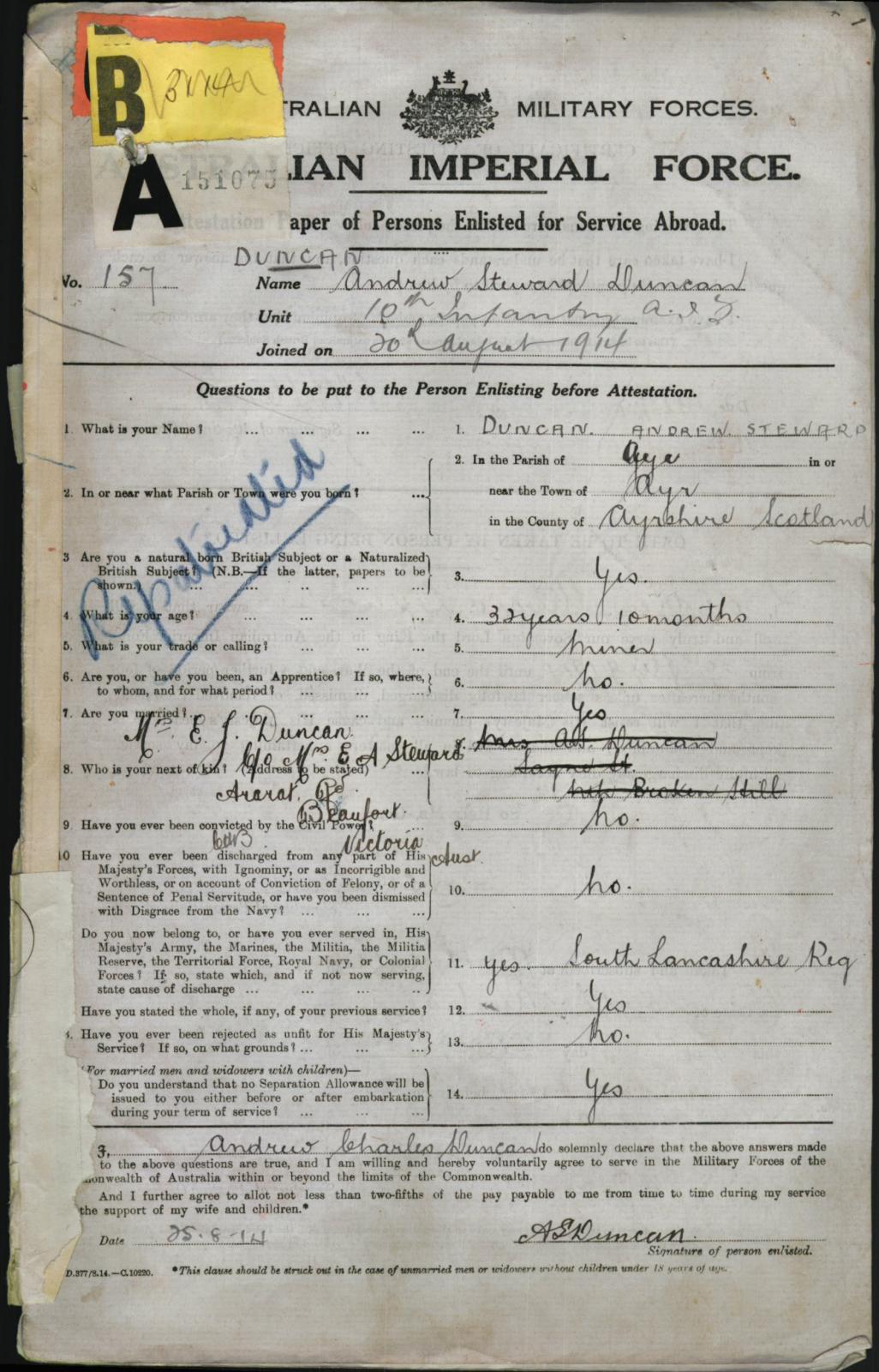 NAA: B2455, DUNCAN, AS. National Archives of Australia.