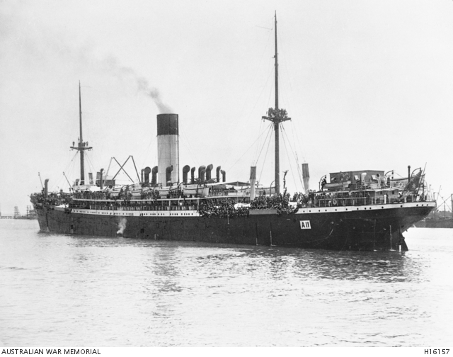 HMAT Ascanius (A11) at Fremantle, Western Australia in November 1914. Australian War Memorial collection H16157